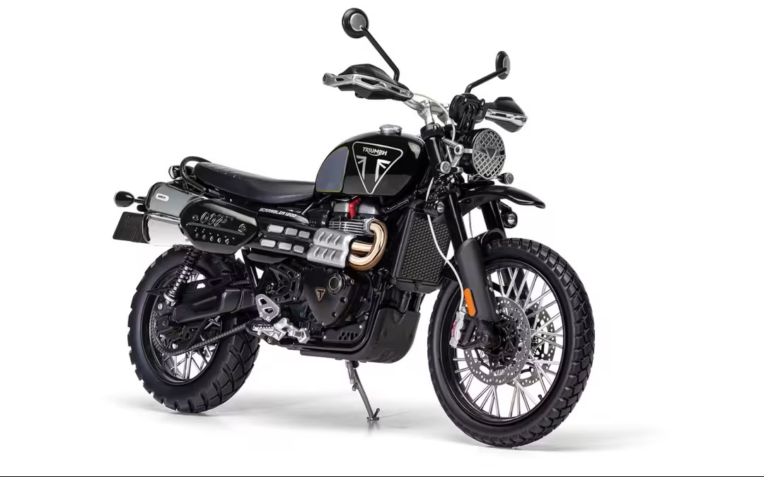 This model recreates edition number 007, which is part of the collection at the Triumph Visitor Centre in Hinckley, UK. First launched in 2018, the Triumph Scrambler 1200 has rapidly become a modern Triumph motorcycle icon, setting a new benchmark thanks to class-leading riding capabilities both on and off-road, outstanding specifications and extensive customisation options.