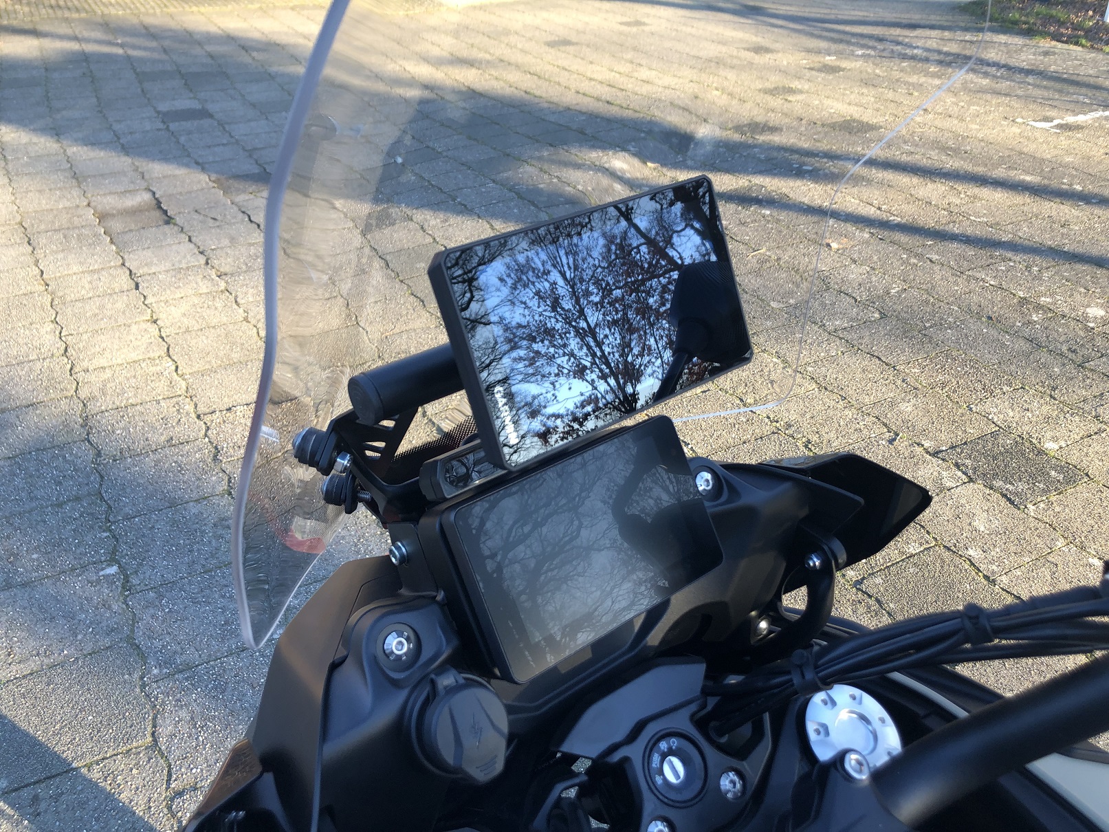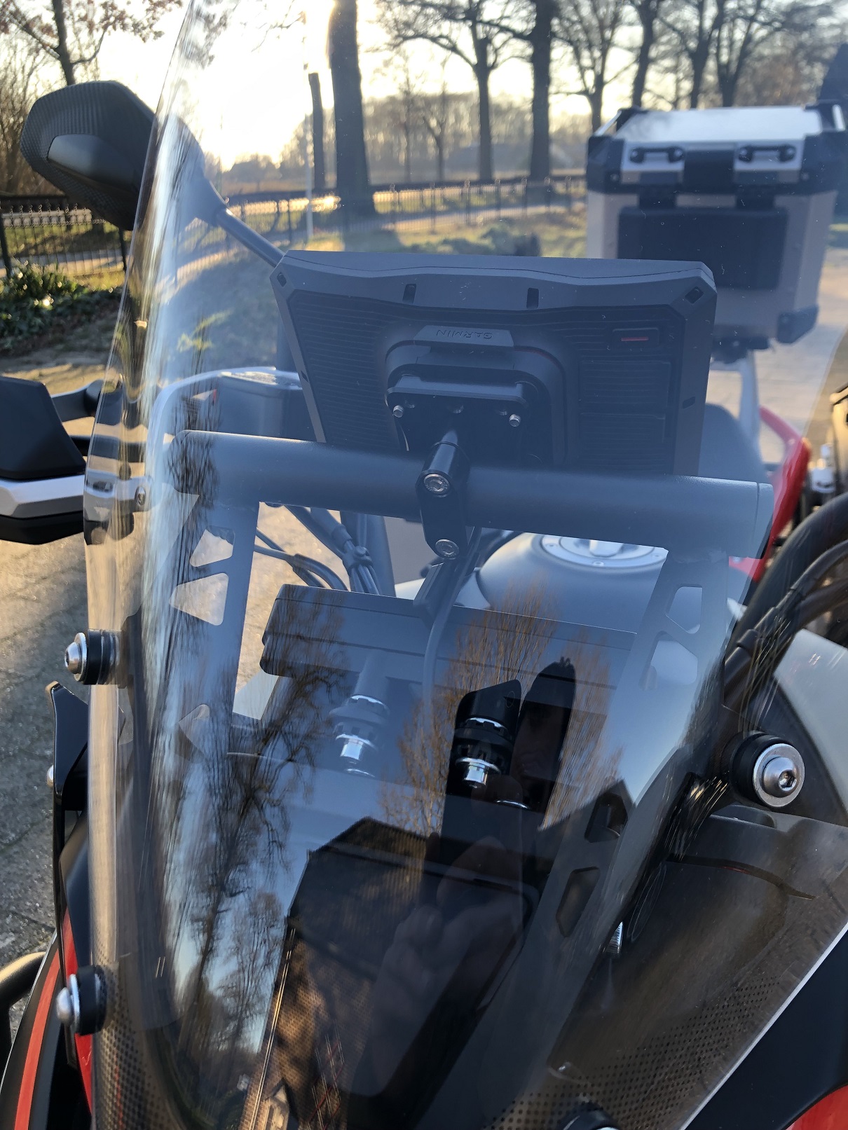 Wil je de navigatie op deze beugel bevestigen? Bestel dan de adapter à €35 mee! Anders wordt alleen de basishouder geleverd (de stalen buis)