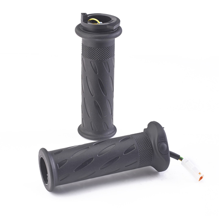 set of bespoke, slim-line dual temperature Heated Grips with integrated control through the left hand grip and display of settings on the motorcycle instrument LCD screen.