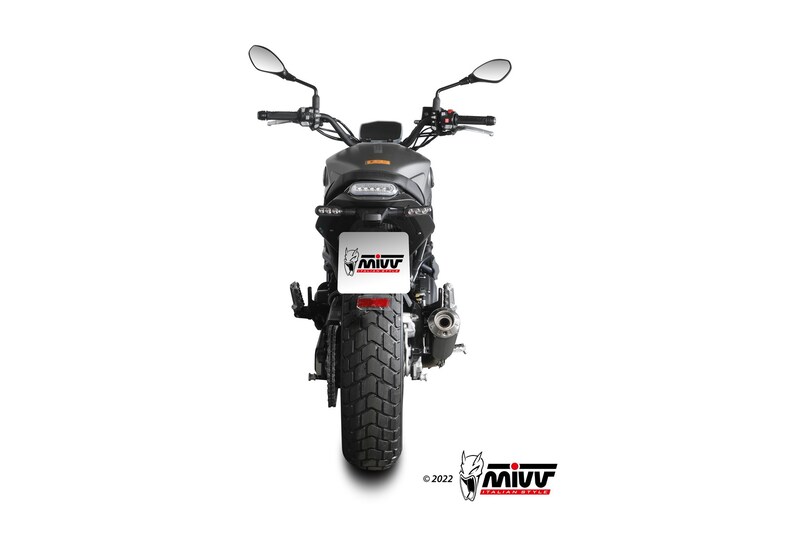 The Mivv X-M1 line, the result of the experience gained in the MotoGP and Moto2 World Championships, is the perfect synthesis between racing style and performance. With a design similar to the exhausts made for the World Championship, the X-M1 silencer has a conical shape and compact dimensions and is able to unleash the captivating MIVV sound.