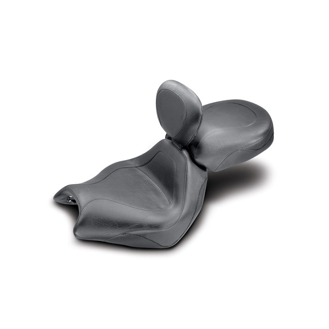 Shoot for the stars with power and comfort. Mustang's two-piece seat for the Triumph Rocket III Touring sets the rider a half inch lower and almost an inch further back than stock position. The wide 17" bucket and the 12" passenger seat provide long-term support for your longest journeys. The built-in driver backrest offers more features than any other backrest on the market.