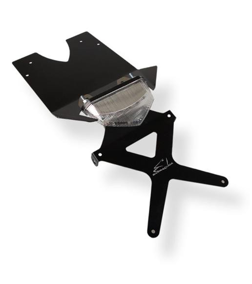 De kentekenplaathouder is vervaardigd uit zwart geanodiseerd aluminium.