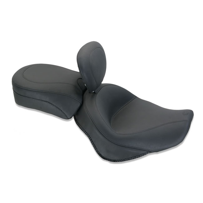 Mustang‘s driver seat is a full 15” wide and sits you at the ideal cruising angle. The passenger sits comfortably in a 11.5” wide bucket that utilizes Mustang’s unique internal steel support wings. Both the solo and rear seat are built on marine-grade fiberglass baseplates, complete with chrome mounting hardware. All styles feature braided edge trim. The built-in driver backrest offers more features than any other backrest on the market.