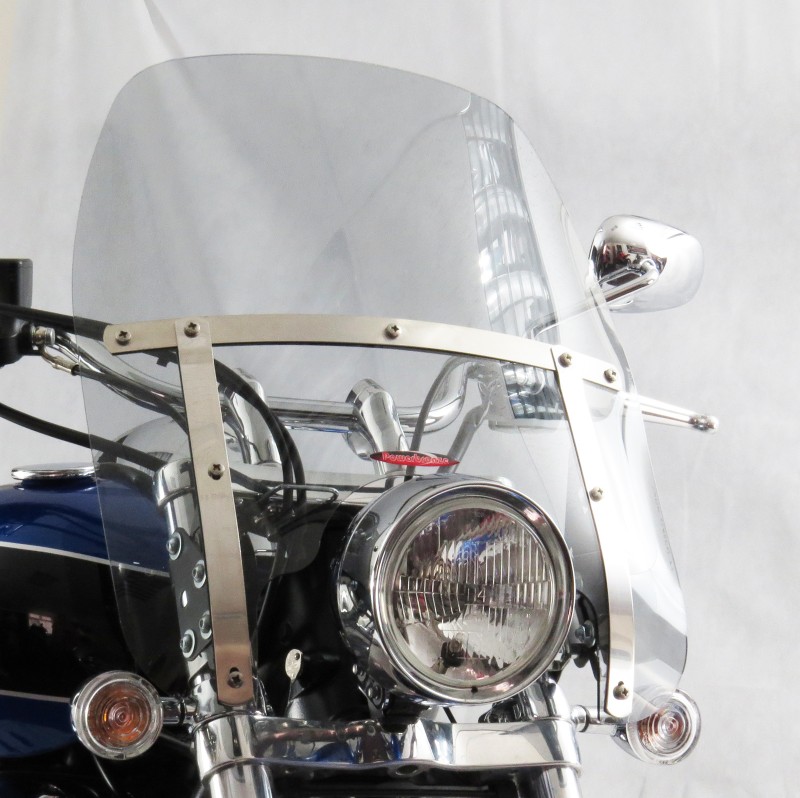 - Polished Stainless Steel front bracket (won't rust) - Auto black finish adjustable rear mounting brackets - 3mm & 4mm Acrylic Clear or Light Tint options - Bike specific mounting kit - Flame polished edge - CNC laser cut for perfect fit