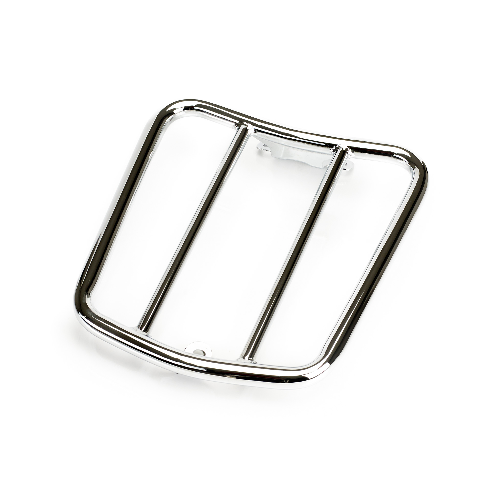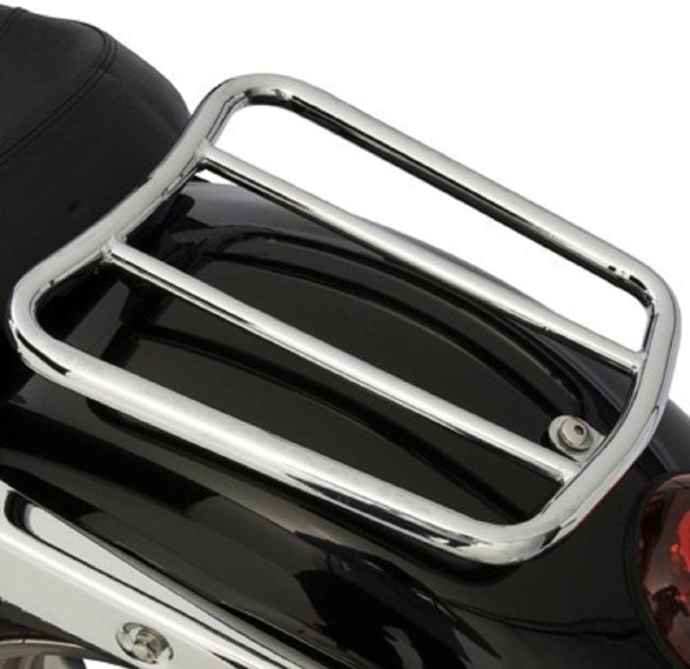 High gloss, hand polished, multi layer Chrome plated luggage rack, fabricated from steel tubing for functionality & strength. This product can only be installed when the passenger seat is removed.