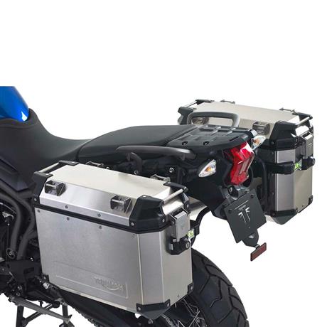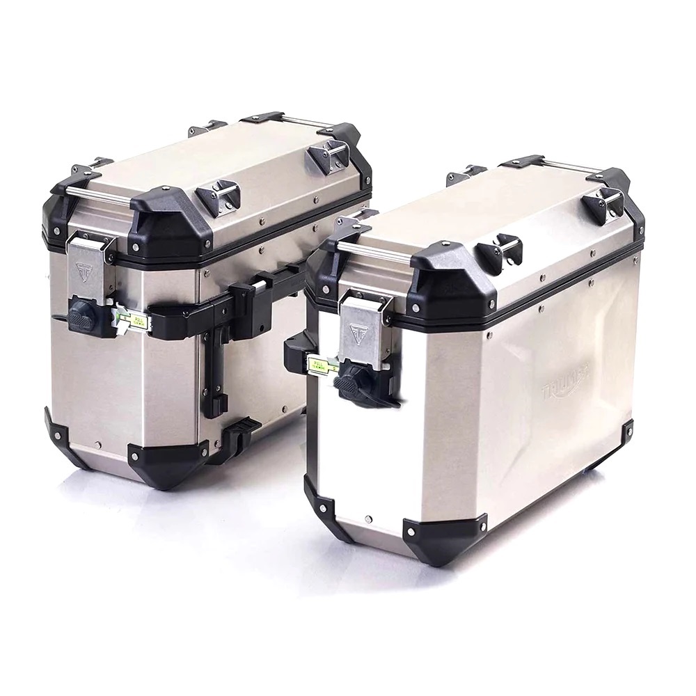 The robust and durable water-resistant Triumph Expedition Aluminium Panniers are made from a 1.5mm thick single skin aluminium structure, and have an eye-catching silver finish.