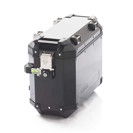 The Triumph Panniers Black are robust and durable water-resistant Expedition Aluminium Panniers are made from a 1.5mm thick single skin aluminium structure, and have a sleek black finish. With polymer corner reinforcements for enhanced protection.