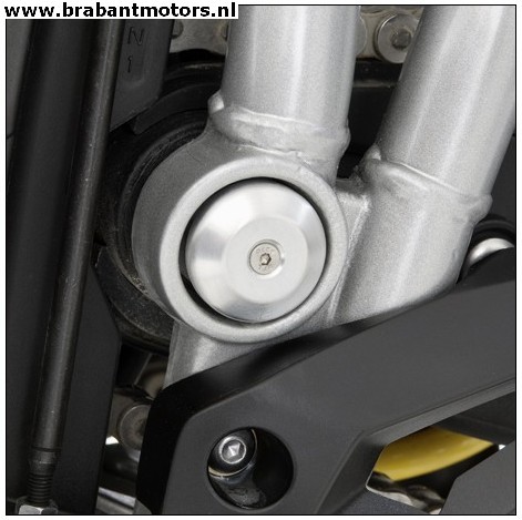 Pair of CNC machined anodised aluminium swing arm pivot covers.