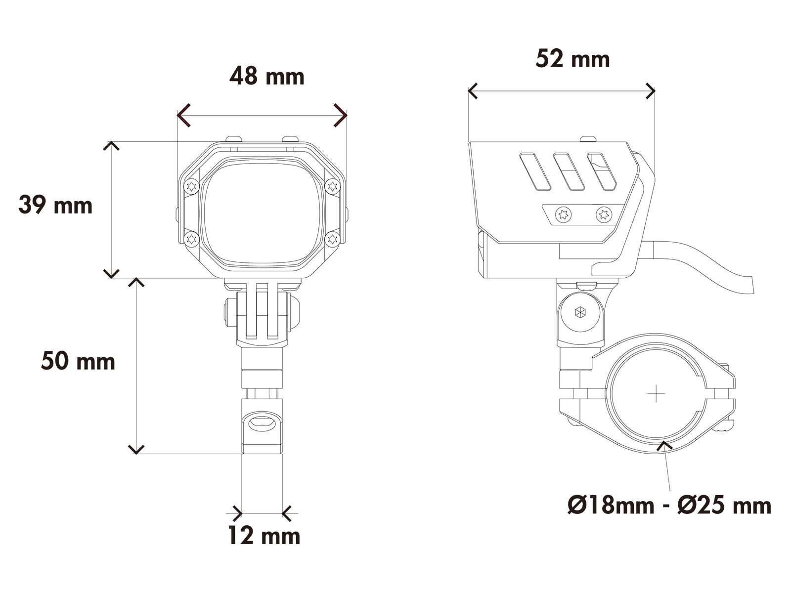 Inclusief aansluitschema, schakelaar en bevestigingen voor op ronde buis 18 mm of 25 mm.