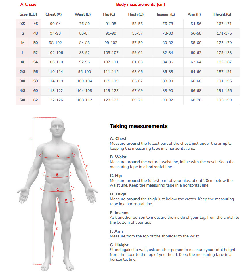 - Verstelbare kraag, bovenarmen en manchetten